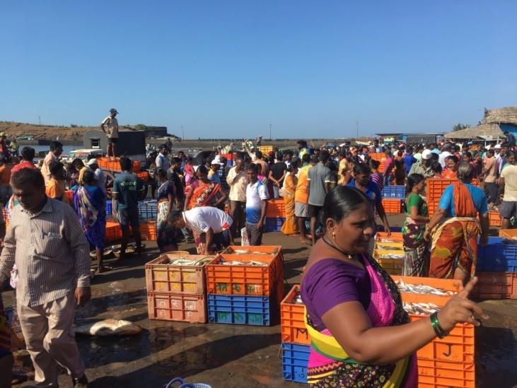 - On arrival, fish are sorted by size, quality. Fisherwomen are heavily involved in this sorting and in local market sales.