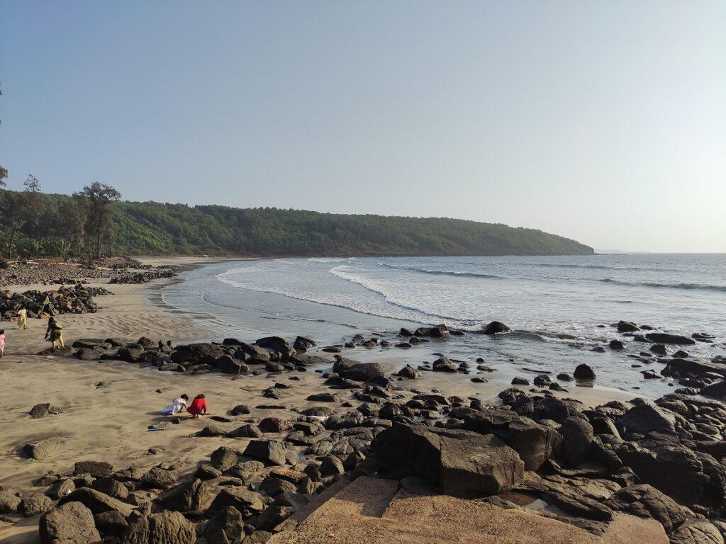 Hedvi Beach is a black sand cove between the two white sand beaches of Guhagar-Velneshwar and Ganpatipule. Hedvi beach is a small stretch with the end towards the Uma Maheshwari temple dominated by rocks.