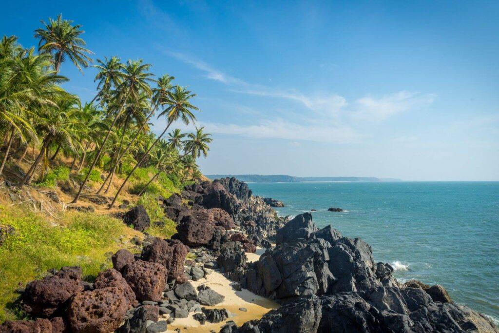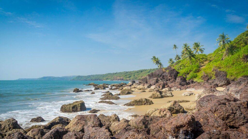 Khavane beach has an idyllic setting & is further enhanced by land locking on two sides, and a temple on the hillock, just next to the beach.