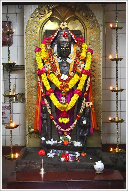 Sabhamandap built in a new old mixture is in front of the Mukhshala. Five Deepmals of black stone are in front of the sabhamandap. Carvings on the the door of sanctum and inside sanctum are stunning. There are two dwarpals on both sides of the sanctum door. On the top side is the statue of Sheshshai Vishnu. The idol of Shri Narayan is of black marble stone. This idol is a quadrilateral. Also, the idols of mythological deities carved on the roof of the temple attract our attention. These idols are ancient. It has various idols like Ganesh, Mahishasur Mardini, Shankar, Agnidev.
