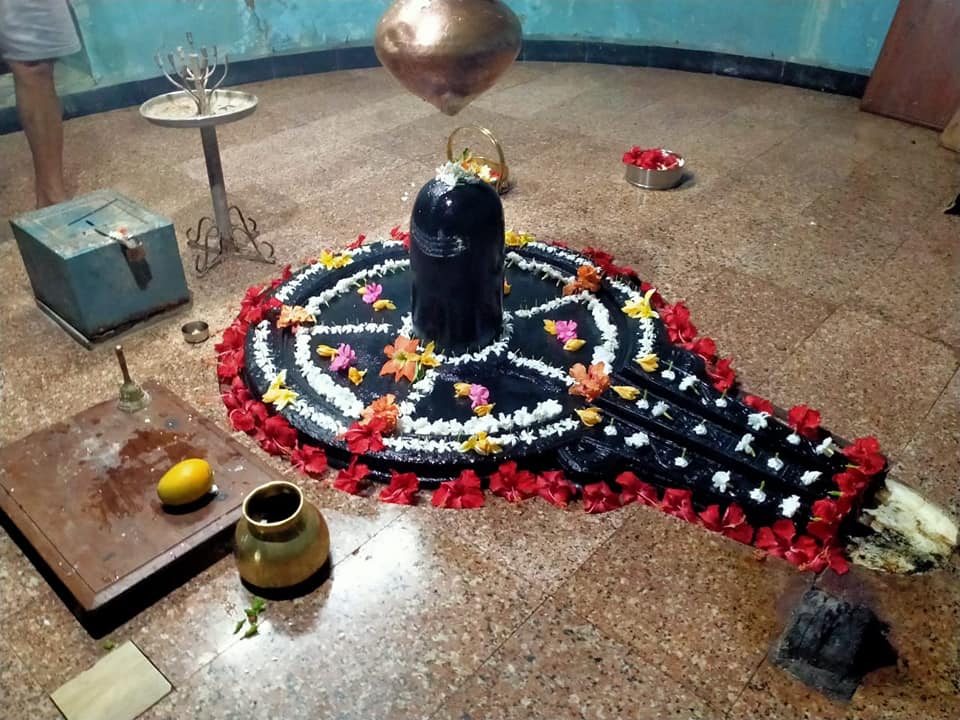 There are tall bushes around the temple. On the left side of the main path, as we descend towards the temple, there are beautiful serene sculptures carved in black stone. There is a small temple of Kalbhairav in a small cave in the beginning of the temple premises. Next to this temple is a temple of Ganesha. The main temple of Vimleshwar is visible after coming in front of the Ganesh temple.